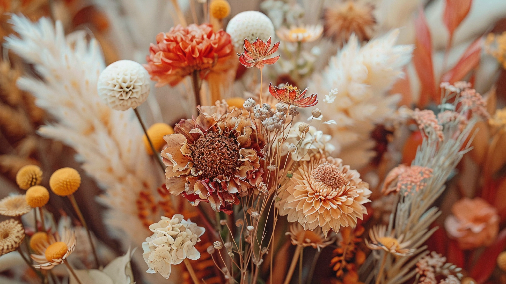 Floreros, centros de mesa, colgantes, guirnaldas, cuadros, colgantes.