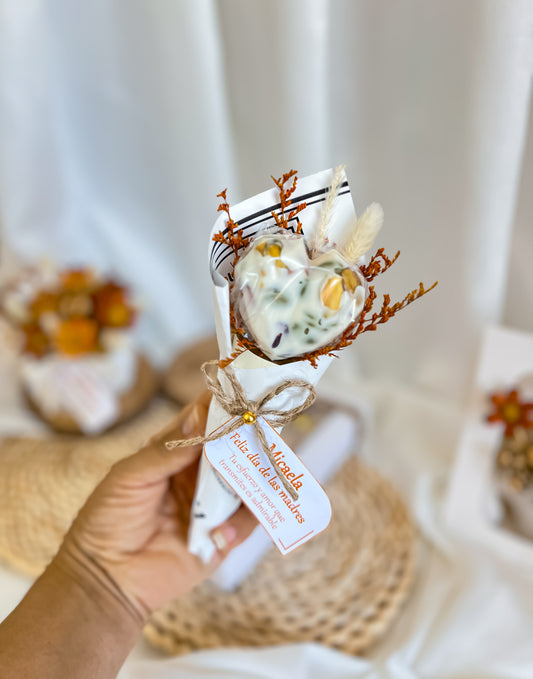 Tarjeta personalizada + corazón de chocolate con frutos secos